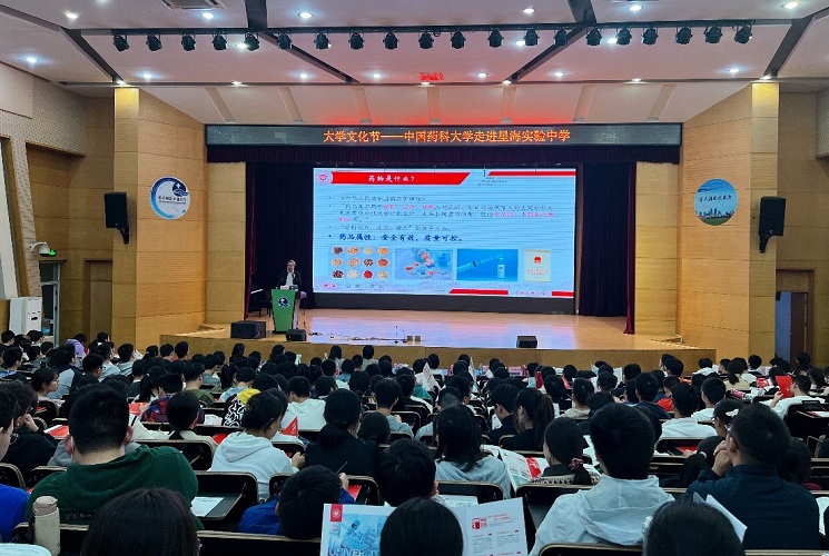 活动期间,正值苏州工业园区星海实验中学举办“大学文化节”。副校长孔令义、苏州工业园区教育局副局长刘海燕与星海实验中学周晓阳校长共同为人妻 捐赠的樱花林揭牌。随后,副校长孔令义为星海实验中学高一生命科学班及高三部分同学作“‘药’动人生,逐梦同行”的科普讲座。讲座围绕“懂药物、学药学、选药大”三方面,深入浅出讲述了药物的概念及药学的重要性,并详细介绍人妻 的发展情况,欢迎同学们报考人妻 。现场同学们踊跃提问,互动频繁,反响热烈。