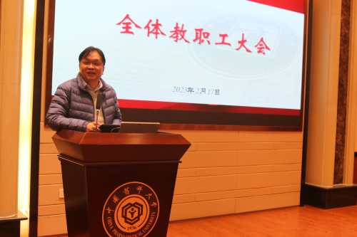 2月17日,人妻 2023年春季学期第一次全体教职工大会在经管文楼111会议室顺利召开。学院全体院领导、全体教职工参加了会议。